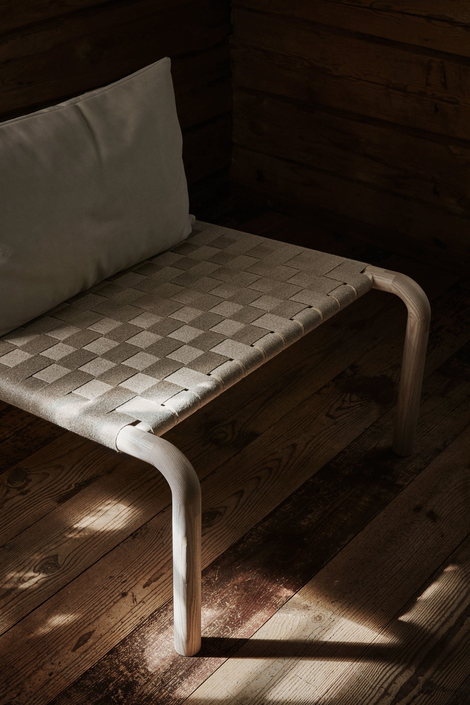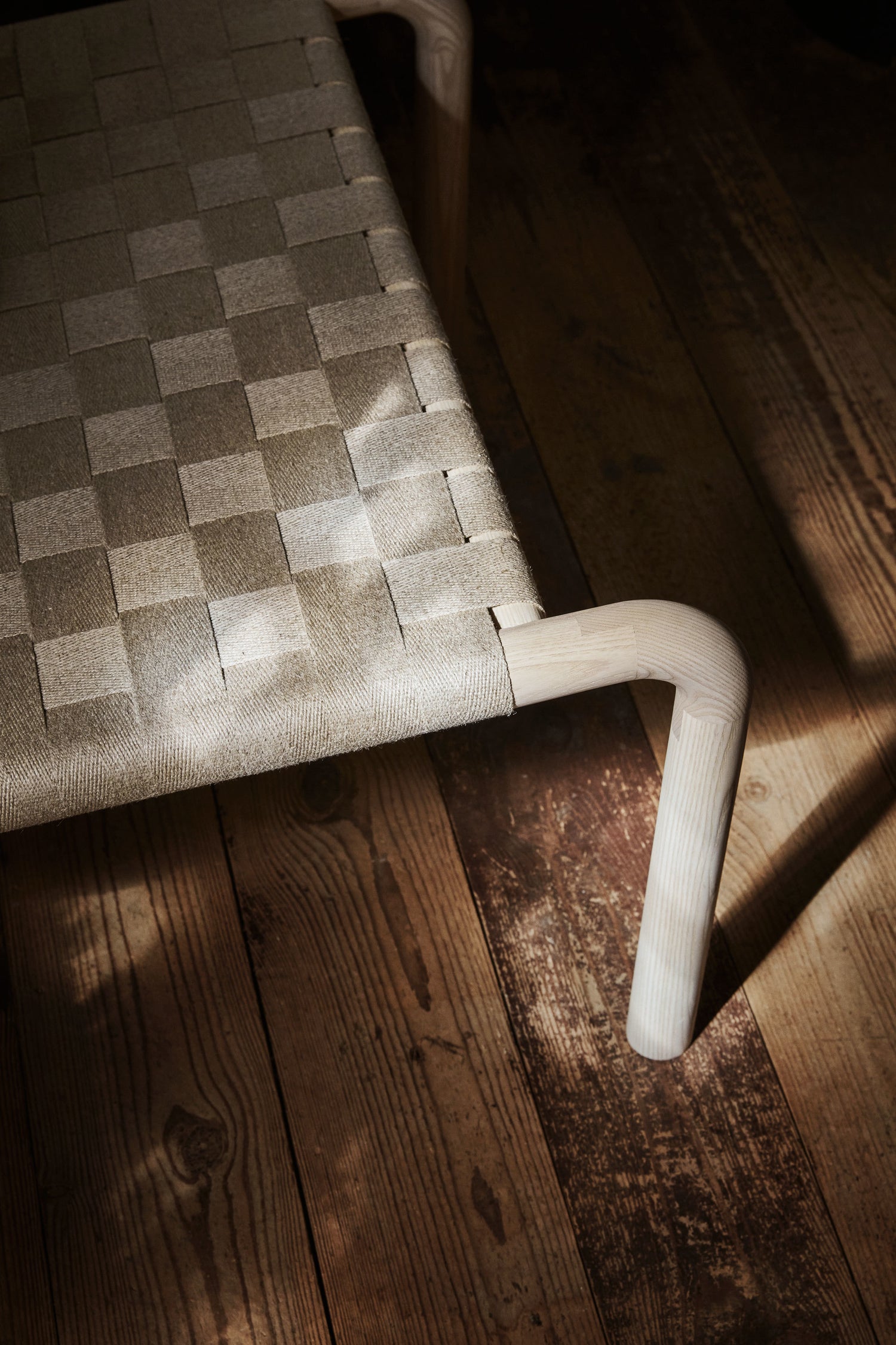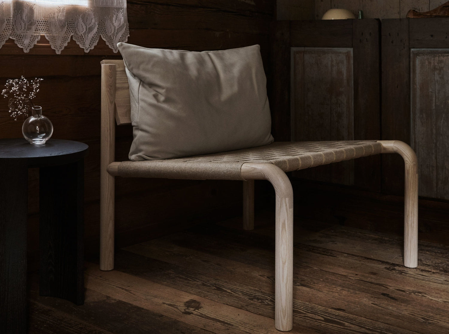 Kaski lounge chair is made of ash wood, linen and leather.